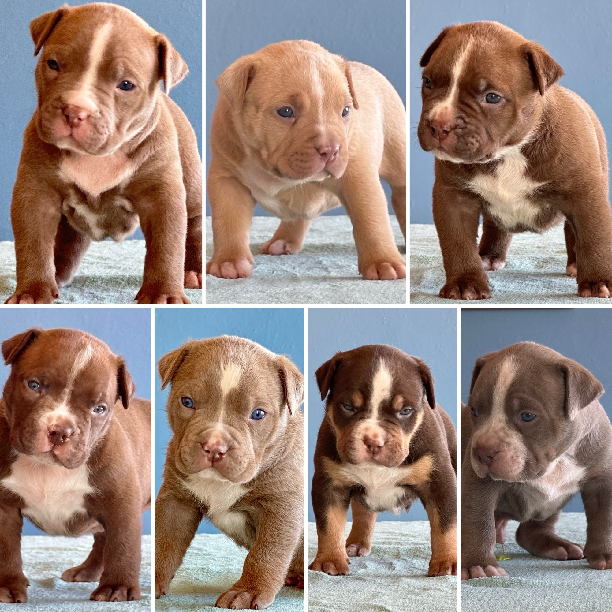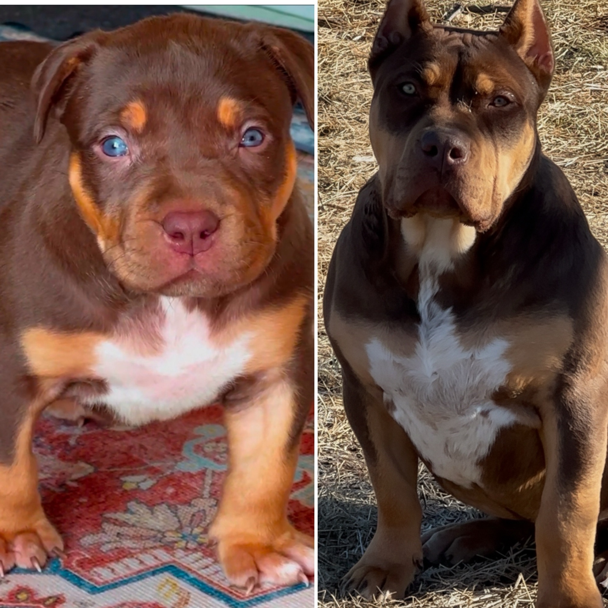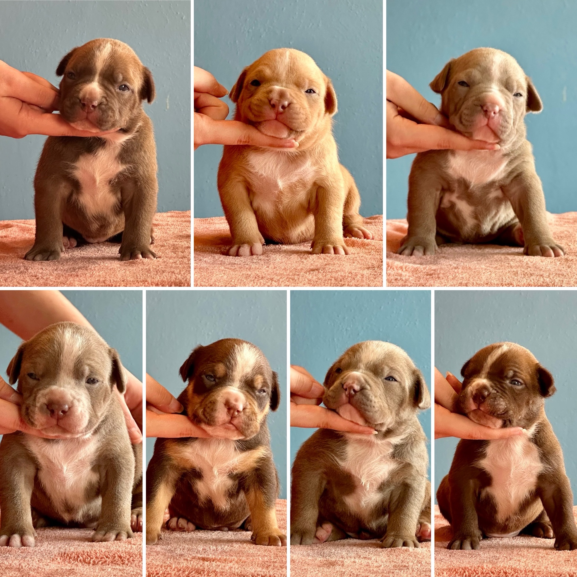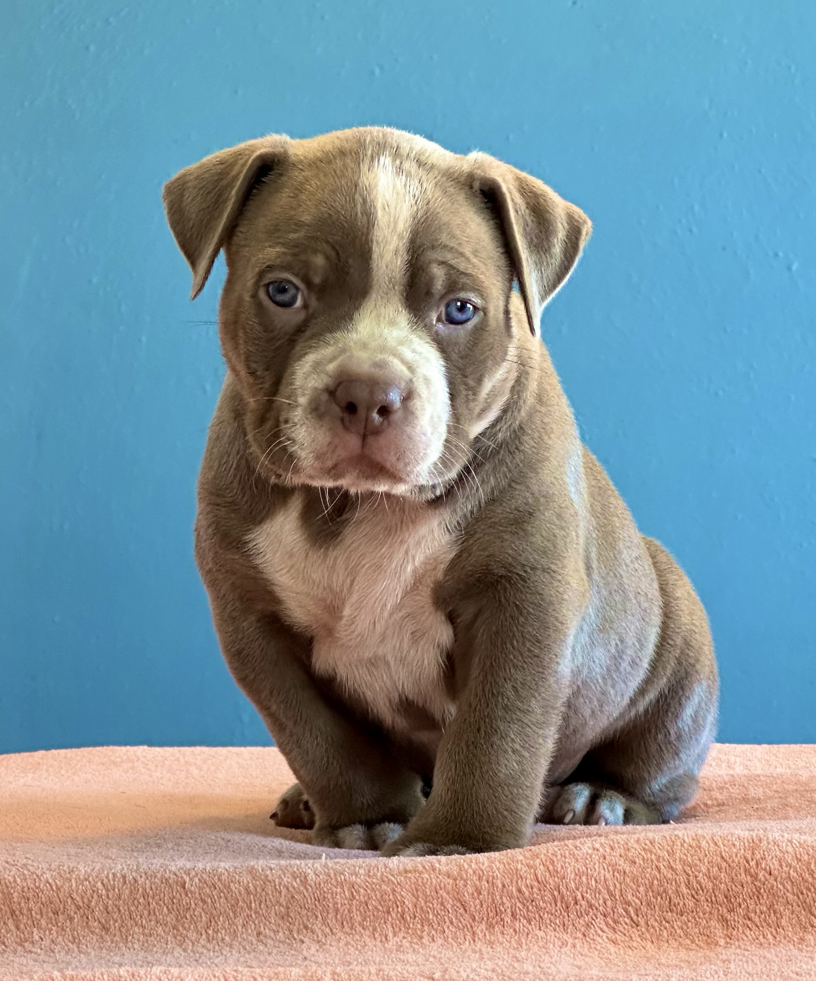 Taking after her father and grandfather in looks and build! The bulliest pup in the litter. She’s absolutely stunning – she is flawless!